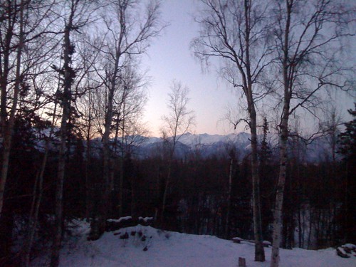 I wanted to blog early here for all of you on non-AK time. Everyone is stirring now except Adelyn. Mike is already off to work. Coffee is made, and the sun is rising to reveal snow-capped mountains in the distance.