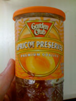 I found it sitting behind another jar of BBQ sauce – a jar of apricot preserves. Kind of jelly like. I had already done the peanut butter on the bread, so I thought, “Maybe she won’t even notice. They’re kind of sweet.”
