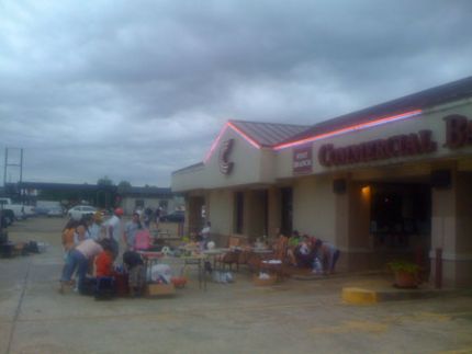 Then on Saturday a.m., we met the McKinstrys at the Commercial Bank parking lot on Highway 425 N for a junk sale. We, fortunately, were the ones selling junk. Normally at my house, wifey is bringing it home from other similar sales. Under cloudy skies that threatened a downpour, we ended up making a little over $50. (Our goal was $170 to pay for Sam’s kids camp that he is going to with First Baptist in two weeks.)