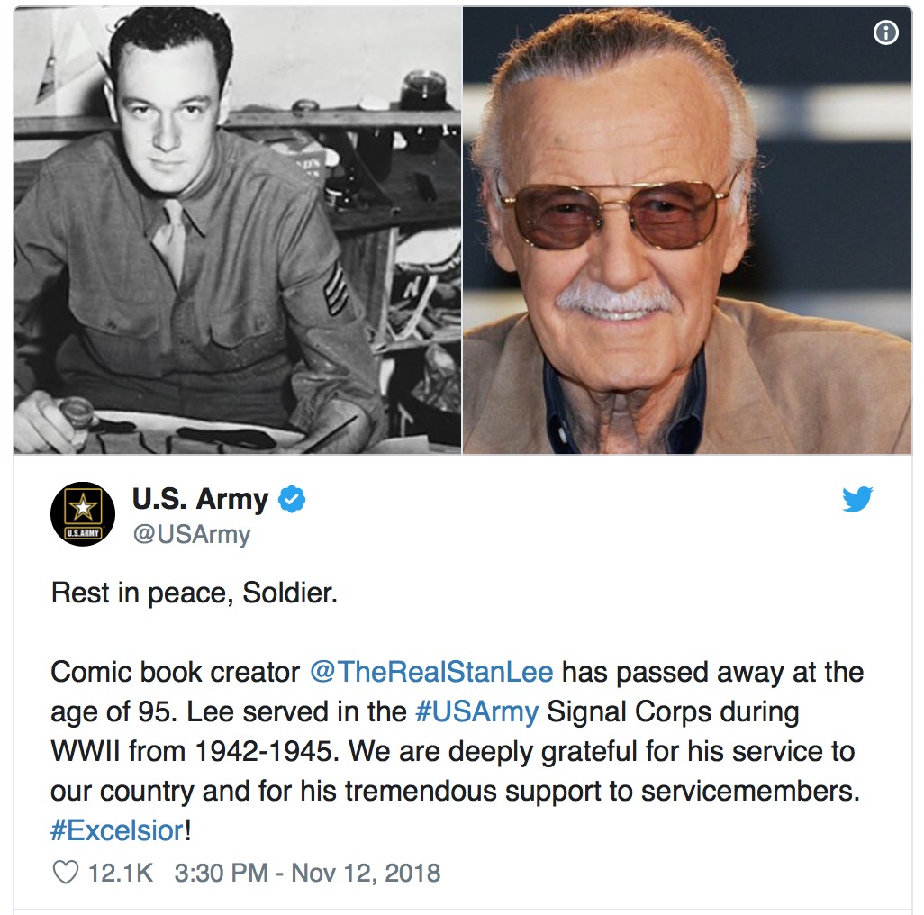 It has been so interesting seeing how many people have paid tribute to Lee today and in the days to come. Even the U.S. Army tweeted a tribute to Lee, who served in the Army for three years during World War II.