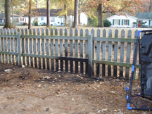 Carolyn’s picket fence. Do I need to say more? Apparently the pizza boxes had gotten blown off the fire and got caught on the fence.