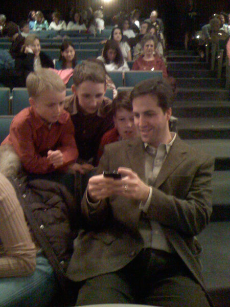 So slow moments (and there were many) found Sam and me sneaking peaks at my iPhone to see who was winning. My brother-in-law James helped out as well with his Blackberry, especially during intermission.