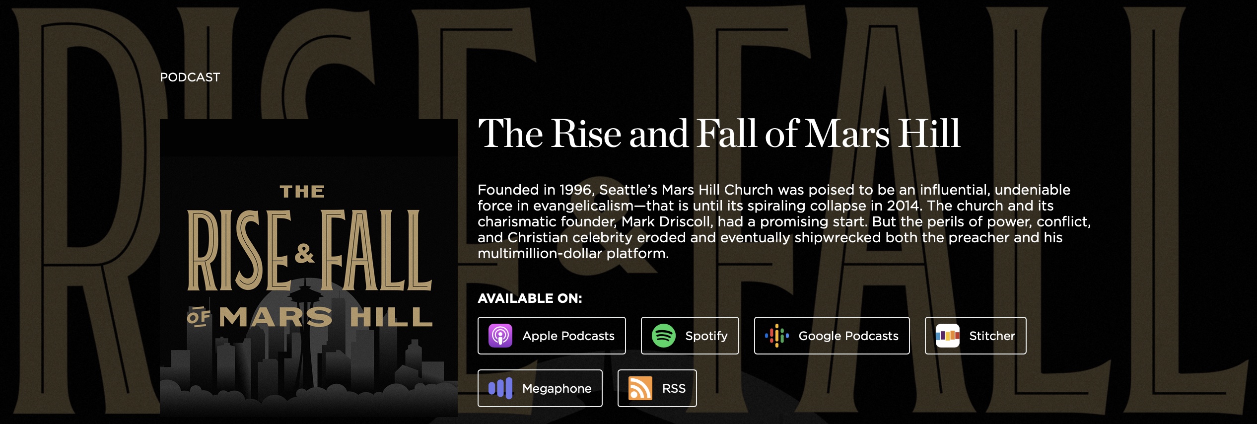 […] One other podcast you should listen to, but I’ve already written about is the Mars Hill podcast. It’s about the collapse of a megachurch. Stunning and sad, but it’s a 2×4 to the side of […]