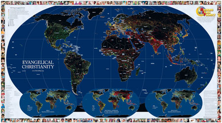 Over at worldmaps.org, you can view a variety of gorgeous map graphics that show you the status of world evangelization. I’ve ordered some for our church and some extra to give away during services. You can also download the images for use as desktops, etc. Here’s what I’m currently using as my desktop: